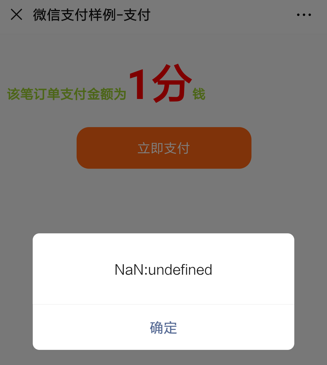 2.进入到支付页面,在点击支付按钮前,就会弹出NaN:undefined。